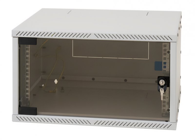 Triton RXA-04-AS4-BAX-A1 is a dismountable wall-mounted rack with lockable doors, delivered in a flat-pack form, which reduces transportation and storage costs. It has a size of 4U and a depth of 400mm. The unique hinge system allows the doors with 4mm tempered safety glass to open at an angle of 125°. One pair of vertical rails can be adjusted in steps at the front of the rack, making it easier to install equipment and organize connection cables.